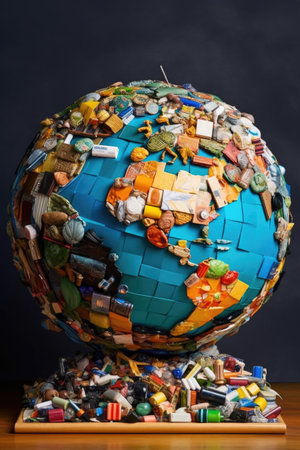 globe surrounded by recyclable materials, created with generative ai