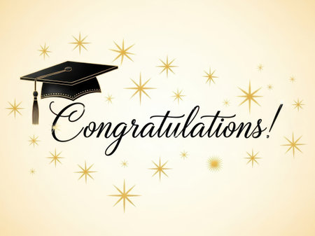 Minimalist elegant background featuring stylish Congrats and black graduation cap. A.I.