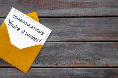 Congratulatory letter for the winner on letter envelope. Winner concept
