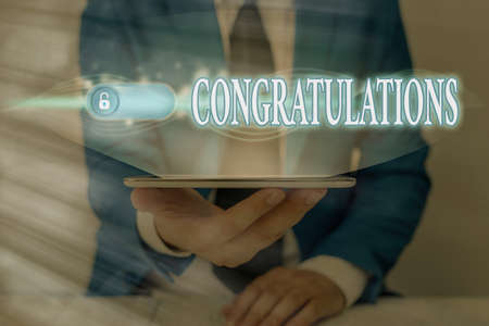 Handwriting text Congratulations. Conceptual photo a special occasion that expressing gratitude or good wishes Graphics padlock for web data information security application system