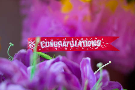 congratulations banner card on top flower and purple blur background