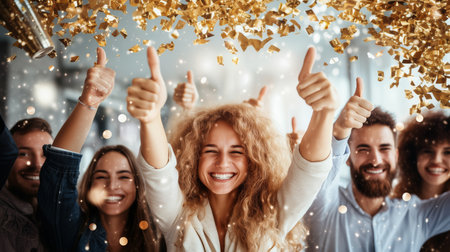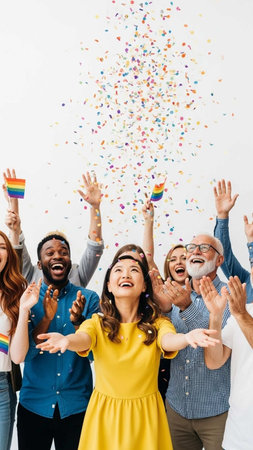 A group of people joyfully celebrating as confetti fills the air, Joyful celebrations with friends and family