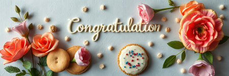 Celebration of achievement with cookies, flowers, and heartfelt congratulations in a decorative arrangement