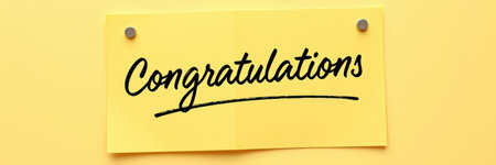 Celebrate achievements with a bright congratulations note attached to a cheerful yellow backdrop