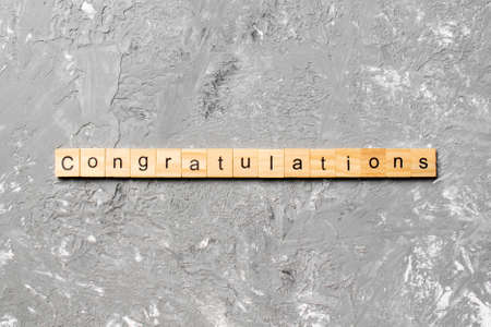 congratulations word written on wood block. congratulations text on cement table for your desing, concept.