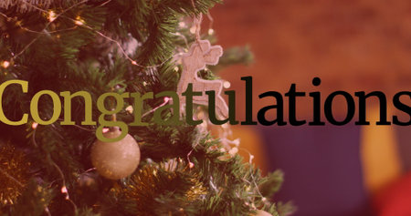 Digital composite image of human representation with confetti and congratulations text. success and celebration with copy space.