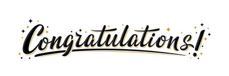 Congratulations! bulk lettering greeting sign. Handwritten modern brush lettering with golden stars. Text for card, T-shirt print, banner, poster, web, notebook, sketchbook. Isolated vector
