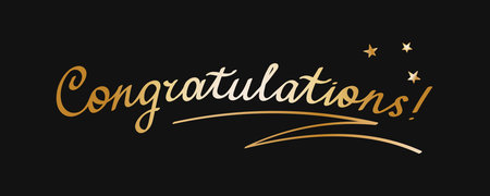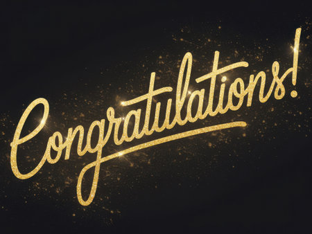 A stunning display of the word Congratulations! in sparkling gold lettering against a dark background, perfect for celebrating achievements, milestones, and special occasions with a touch of elegance