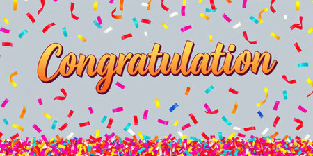 Celebration with colorful confetti and a congratulatory message on a neutral background