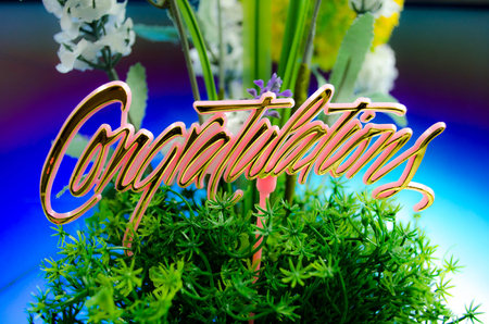 Congratulations sign with colorful flowers background