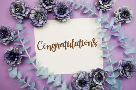 Congratulations typography text and flower decorate on purple background