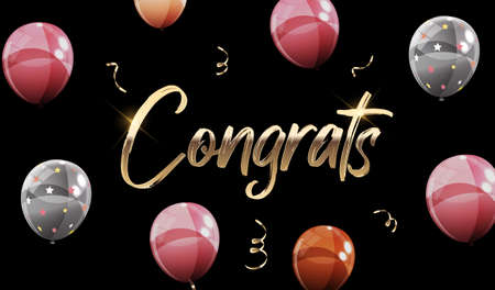 Congrats golden lettering isolated on dark background. Vector illustration with the inscription Congratulations and stars