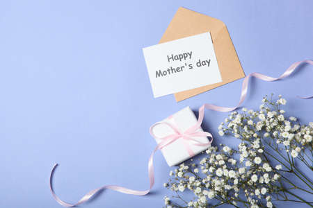 Envelope and self made greeting card concept with fresh carnation flowers.