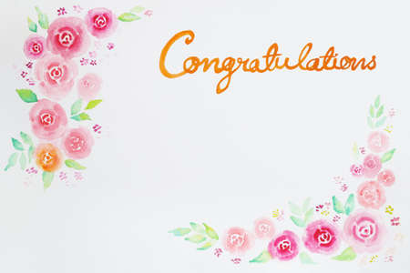 Watercolor roses sweet soft frame with hand drawn Congratulations