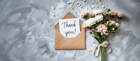 Generative AI, Envelope with flowers and a Thank You message on neutral background