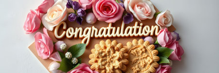 Celebration of achievement with cookies, flowers, and heartfelt congratulations in a decorative arrangement