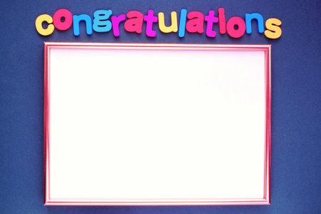 Colorful alphabet word Congratulations and frame on dark blue background. graduation concept. Primary school, high school, college, university graduation. education card