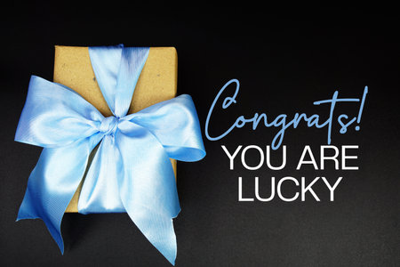 Congrats! You Are Lucky text with gift box present on black background