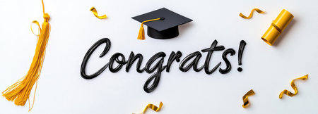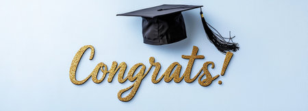 Minimalist elegant background featuring stylish Congrats and black graduation cap. A.I.