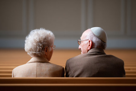 Senior Jewish Couple Sitting in Synagogue