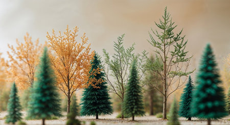 AI Generated. Miniature Landscape with Deciduous and Coniferous Trees