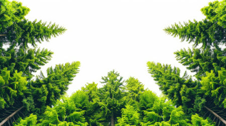 A serene forest teeming with vibrant green trees reaching towards the sky, creating a captivating and tranquil scene in natures embrace.