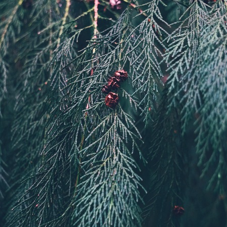 juniper branch with new needles, dark mood photo
