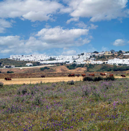 A landscape of Vejer de la Frontera under the sunlight and a blue sky in Spain