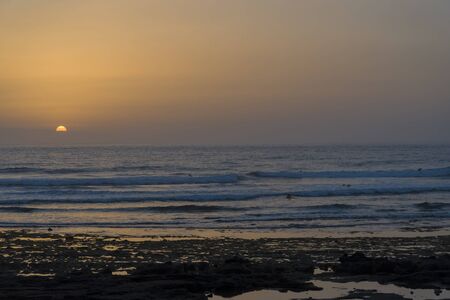 Coastline near El Cotillo village on Fuerteventura island on the sunset in Spain