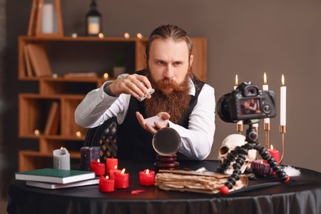 Male fortune teller recording video for blog