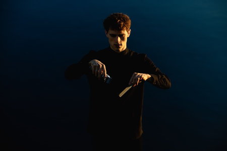 ..Magician mesmerizing with intricate focus. Illusionist captivating audience with sleight of hand