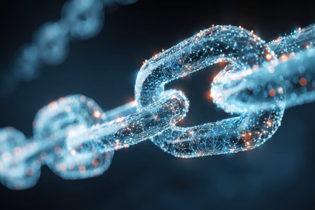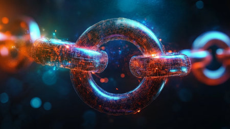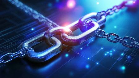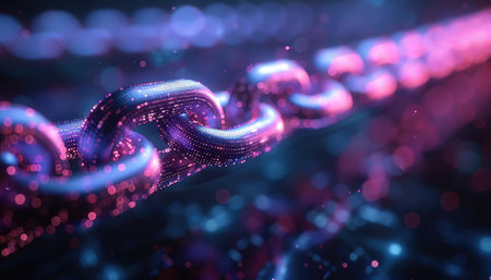 Glowing blockchain chain with futuristic lighting