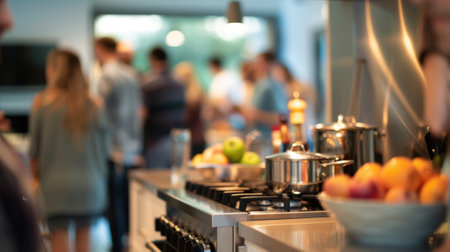 Blurred view of guests admiring the updated appliances in the kitchen at the open hous