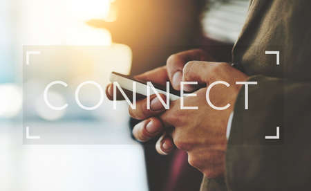 Digital composite of Hand with phone and Connect text with drawings graphics