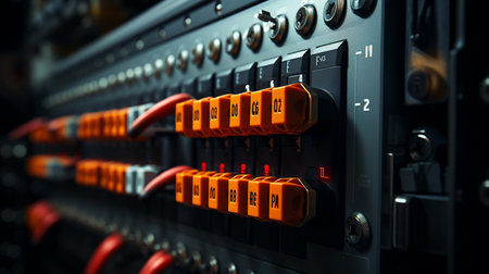 A close up of a set of switches on an electrical panel, AI