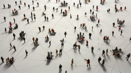 This graphic presents a network of connected person icons against a dark background. The monochrome palette accentuates the network lines and the individual human symbols. The composition, lit with soft lighting, may be suitable for illustrating connectivity and communication, appropriate for digital and business applications.