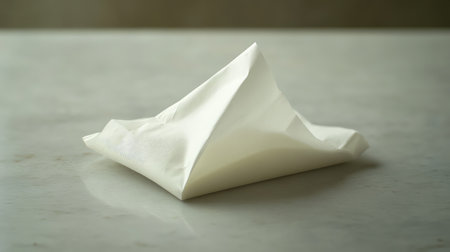 A beautifully folded piece of white tissue paper rests elegantly on a smooth surface, showcasing simplicity and minimalism, perfect for artistic and design inspiration.