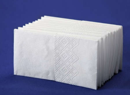 A stack of white napkins sits neatly on a wooden table, bathed in soft natural light, creating an inviting atmosphere perfect for any dining occasion.