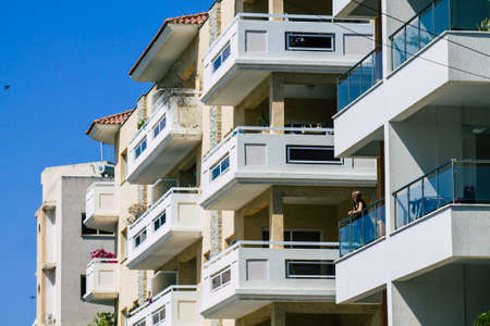 Limassol Cyprus April 18, 2020 View of a facade of a modern building in the streets of Limassol in Cyprus island