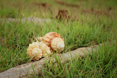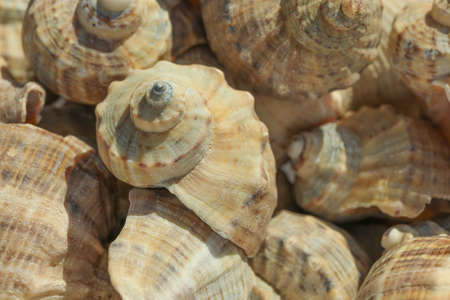 Old weathered conch shell background. Tropical sea conch wallpaper
