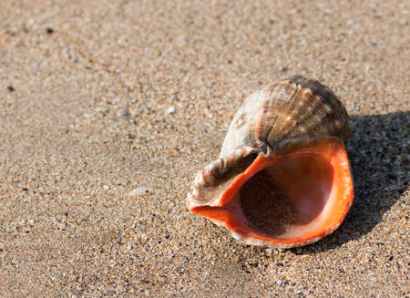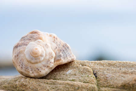 Beautiful seashell on the beach at sunset. Shallow DOF