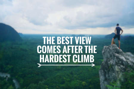 Motivational and inspirational quote - The best view comes after the hardest climb. Blurred styled background.