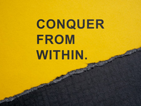 Torn piece of paper and motivation phrase conquer from within.