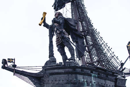Monument In memory of the Ledovoye Battle located in the city of Pskov in Russia. stone horse
