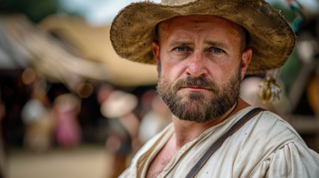 Pirate captain looking sternly, portraying a strong and determined leader from the golden age of piracy