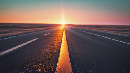 AI Generated. Sunset on the Open Road with Clear Horizon
