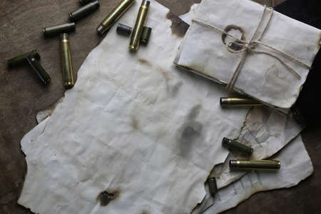 many shell casings from bullets of different caliber in the background chaos concept in the world