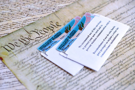 The second amendment and gun control in america concept. Bullets on american constitution with close up on We The People part of the United States constitution