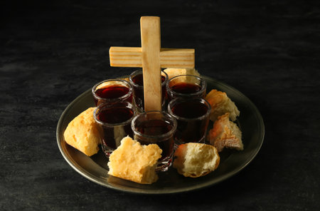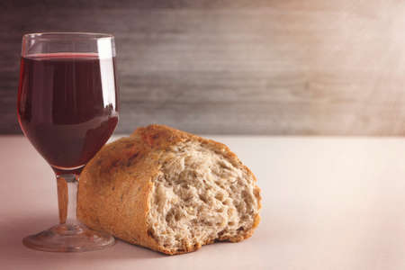 Concept of Eucharist or holy communion of Christianity. Eucharist is sacrament instituted by Jesus. during last supper with disciples. Bread and wine is body and blood of Jesus Christ of Christians.