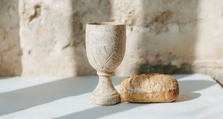ancient religious chalice and bread
